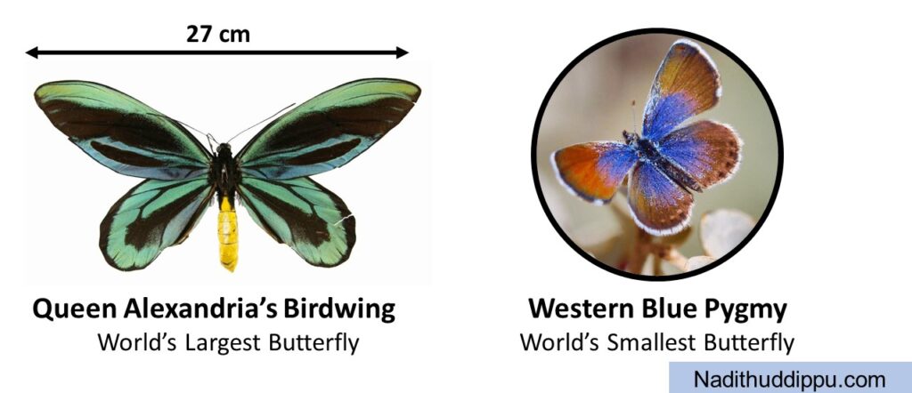 - The Queen Alexandria’s Birdwing from the New Guinea Island is the largest butterfly in the world. It has a wingspan of around 27cm.